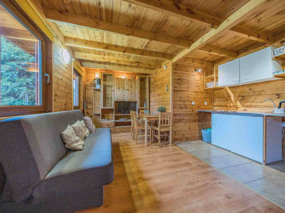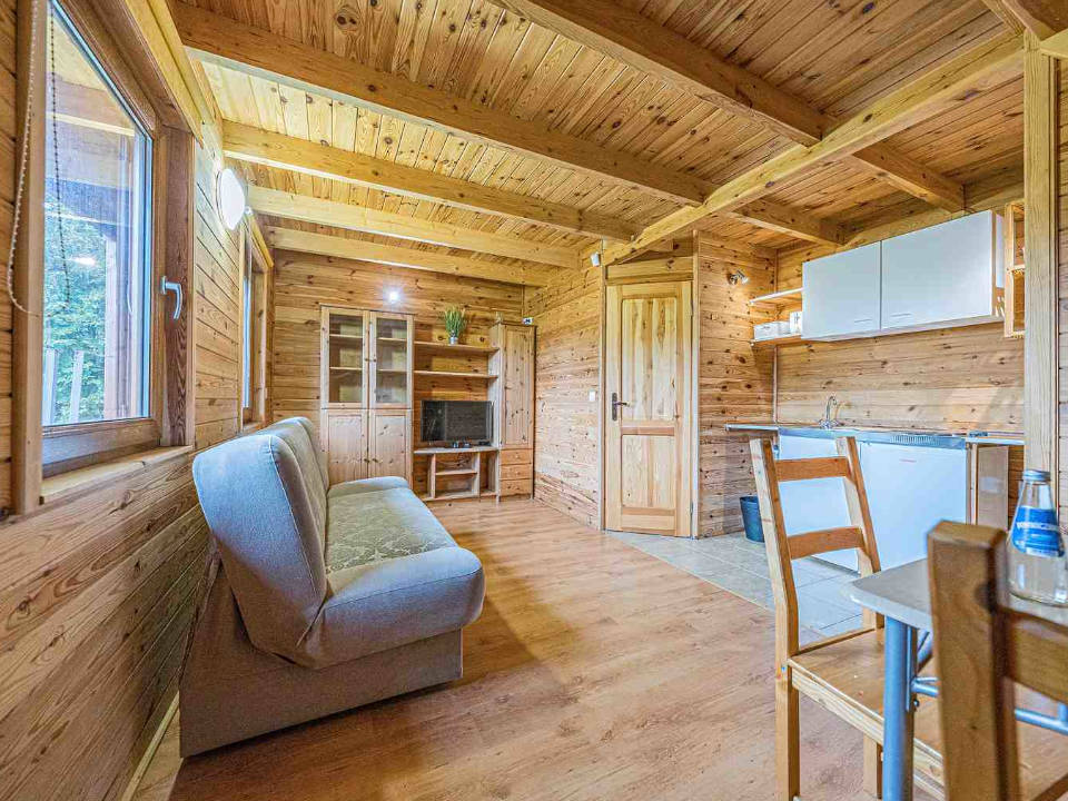 Przestronny domek klimatyzowany z oddzielna sypialnią, kuchnia oraz łazienką.