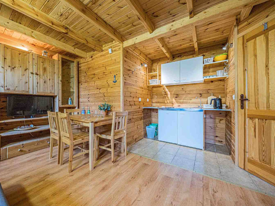 Wygodny domek z 2 sypialniami, aneksem kuchennym i łazienką.